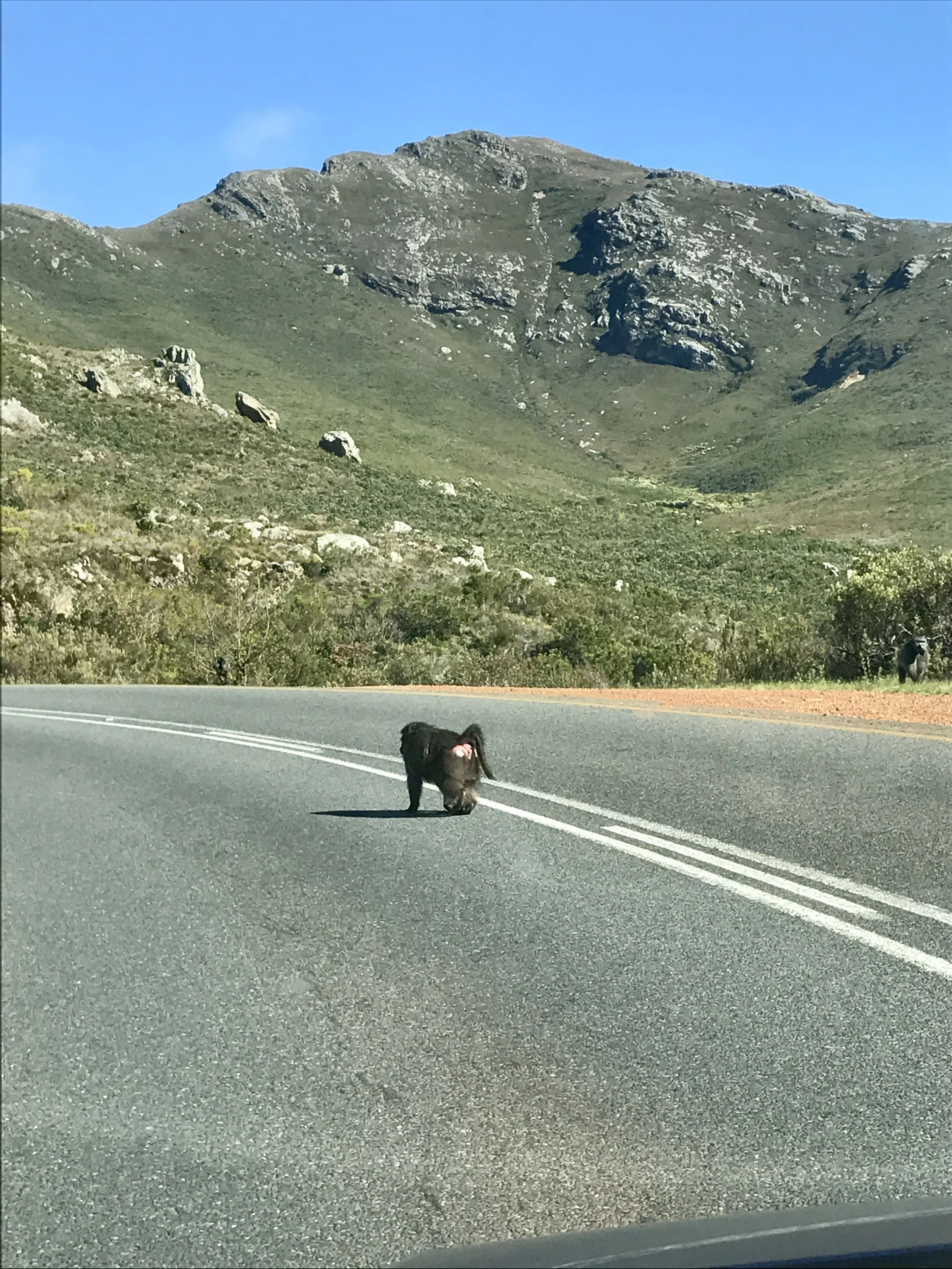 The closest airport to Hermanus is Cape Town International Airport (CPT). You can rent a car at the airport and drive 1.5 hours to Hermanus. The drive from Hermanus to Franschhoek takes between 1.25-1.5 hours, depending on the route you take. As you approach Franschhoek, you’ll drive over Franschhoek Pass, which is a beautiful road with switchbacks that winds through the mountains. We even saw a few baboons on the road, so keep your eyes peeled/go slow around corners!