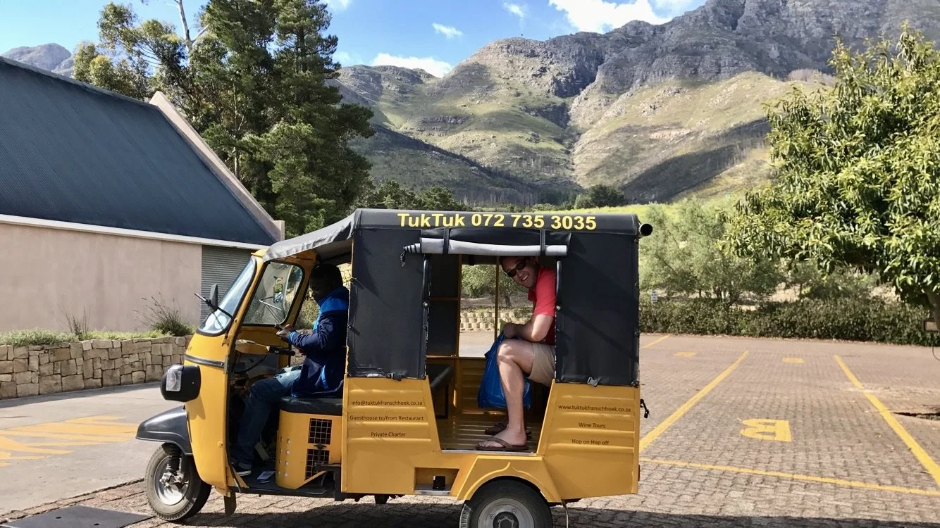 You don’t need to drive your rental car in Franschhoek either, especially if you’re planning on visiting one or multiple vineyards in a day. Play it safe and leave your car at your hotel, and take the Wine Tram (more on that later) or the TUK TUK instead! While you can book half/full-day wine tours on TUK TUK Franschhoek’s website, you can also message them on WhatsApp or wave down a driver in town! We waved one down and they were able to take us from our hotel to a winery and back. It’s a super fun way to get around!