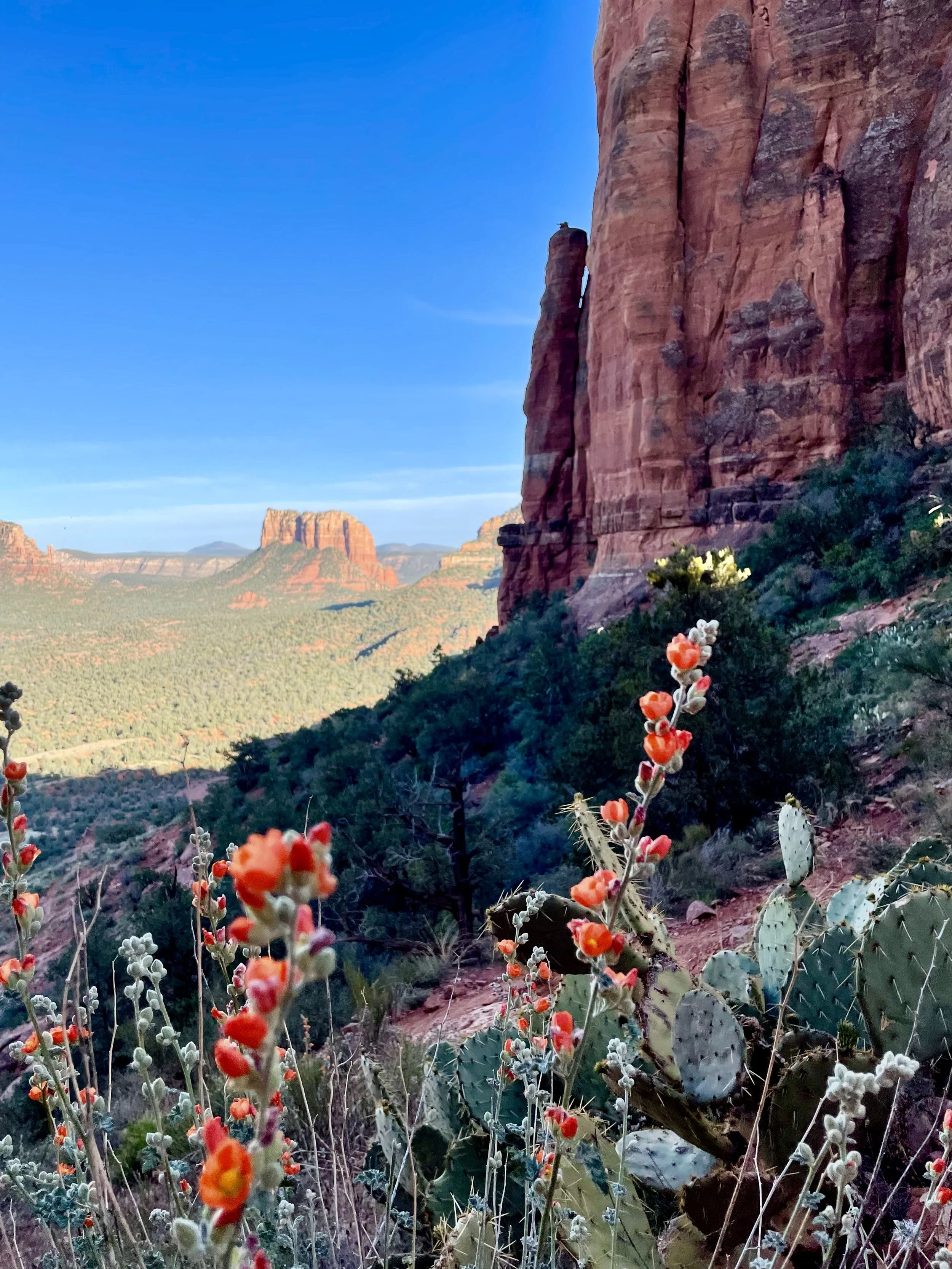 As I mentioned above, April daytime temperatures in Sedona are in the mid-70s and there’s plenty of sunshine. Be sure to pack layers for nighttime as it can drop to the low-50s. And don’t forget to pack or buy sunscreen! Even though the spring isn’t oppressively hot, the sun is strong. We ran out of sunscreen on one of our hikes and we all got pretty fried! The added bonus of visiting Sedona in the spring? So many beautiful desert flowers are in full bloom!
