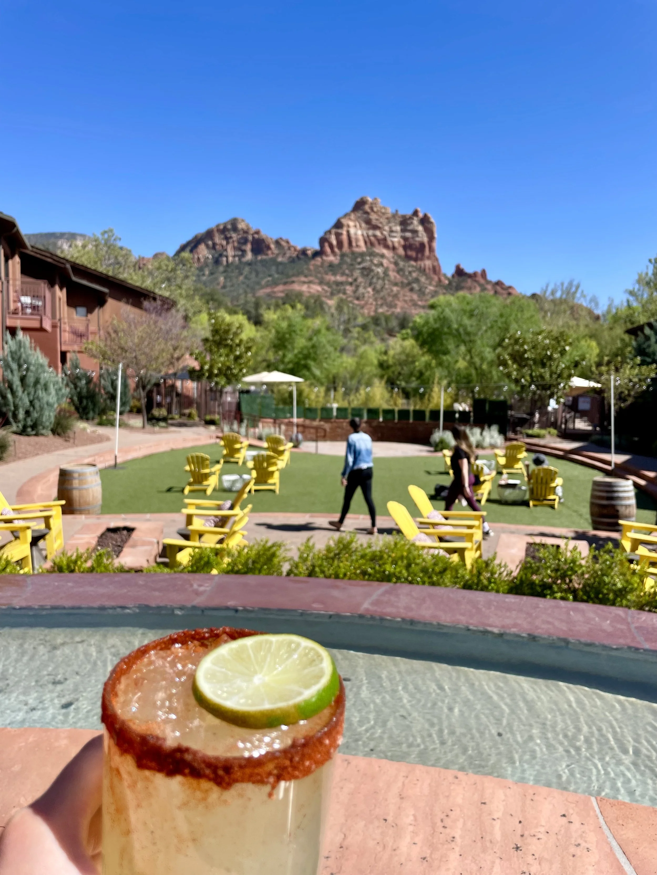 Golf at Sedona Golf Resort - Alright, I’ll admit I’m not a golfer. I’ve never taken lessons and honestly don’t have an interest in them, and I whiff the ball more often than I hit a decent drive. However, one of my favorite things to do on vacation—especially when we’re traveling with another couple—is to ride around in the golf cart, take a few swings here and there, and enjoy beautiful courses (and I pay of course!) And Sedona Golf Resort is easily one of the most beautiful golf courses I’ve “played.” It’s a semi-private course located just past the Village of Oak Creek (about 15 minutes from Uptown Sedona), and has immaculate greens/landscaping and red rock views at every turn. They also have delicious cocktails (special shoutout to the Bloody Mary’s, transfusions, and margaritas) and a beautiful clubhouse.