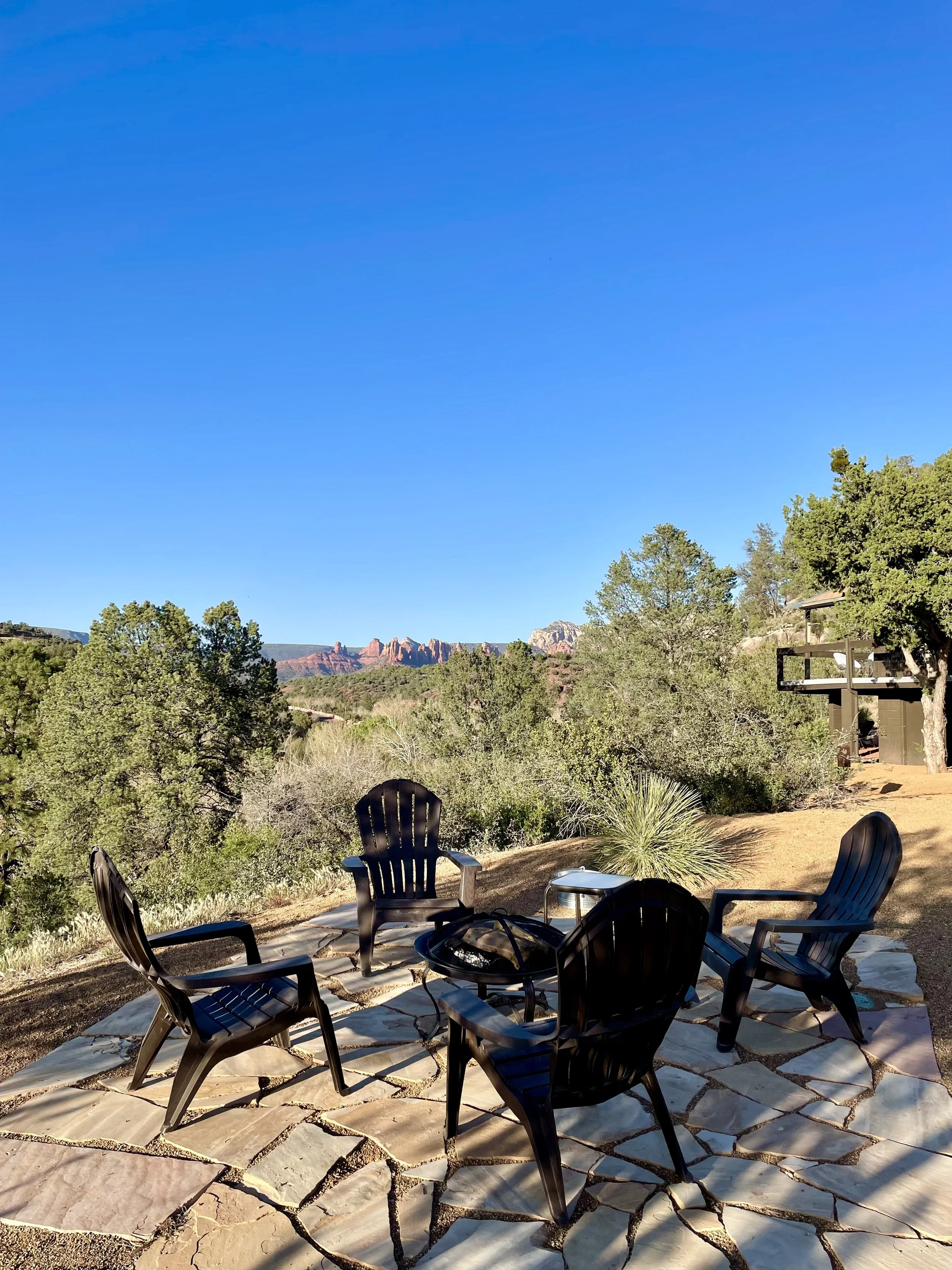 Airbnb/VRBO - If you’re traveling with a group, rent a private vacation home! There are so many incredible properties in Sedona, and the place I booked is one of my favorite Airbnbs I’ve stayed in to date. Casa La Courta is located along Oak Creek (our husbands could see fish so pack your rods!) and is walking distance to Cathedral Rock. During the busy season, the road to Cathedral Rock trailhead is closed to resident traffic and can only be reached by the public via shuttle. That means you have direct access to one of the best hikes in Sedona! And, the property itself is stunning. You have magnificent red rock views from the kitchen, fire pit, patio, and hot tub. One morning while cooking breakfast, I spotted a bobcat slinking across the patio! The interior is well-decorated, comfortable, and perfect for two couples. The house is in a great location; it’s away from all of the touristy action on the main drag, but is a 10-15 minute-drive to most attractions and restaurants. We were even able to order an Uber one night to take us to and from dinner.